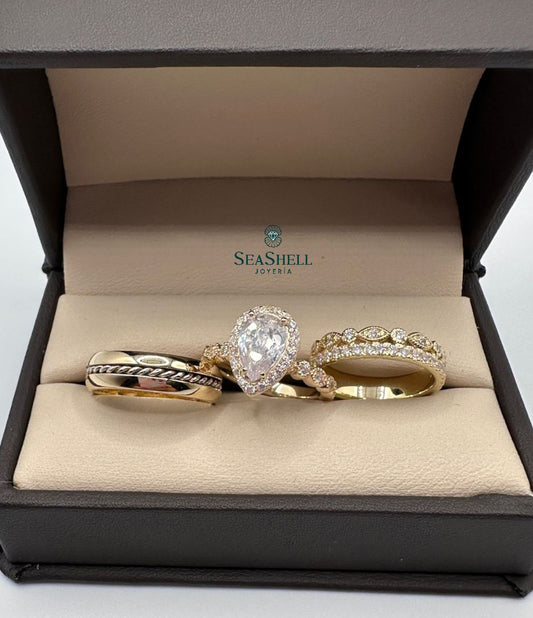 ✨ Trío de Anillos de Boda en Oro Amarillo ✨