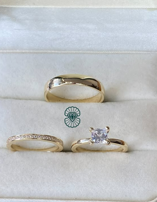 ✨ Trío de Anillos de Boda en Oro Amarillo ✨