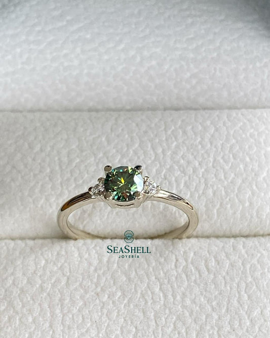💍 Anillo de Compromiso en Oro Blanco con Moisanita Rainbow Green 💍