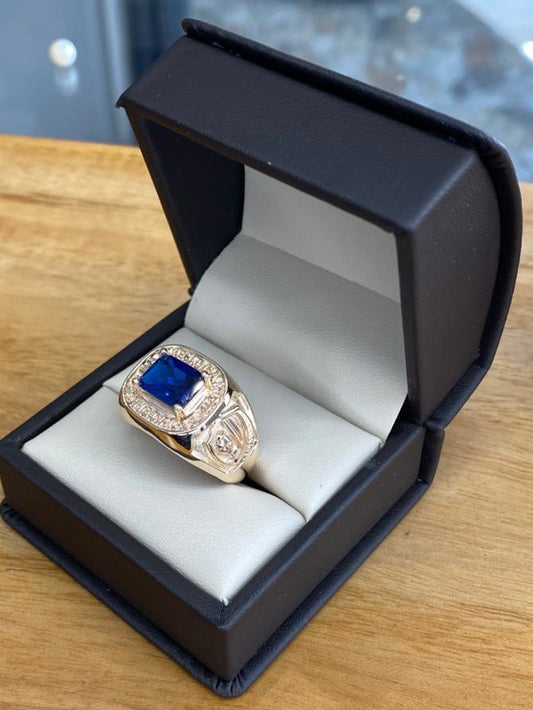 Anillo de Graduación Personalizado en Oro de 10 Kilates con Piedra Azul – Modelo 2025