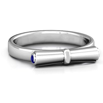 Este anillo de graduación en oro blanco u amarillo presenta un diseño moderno y minimalista.