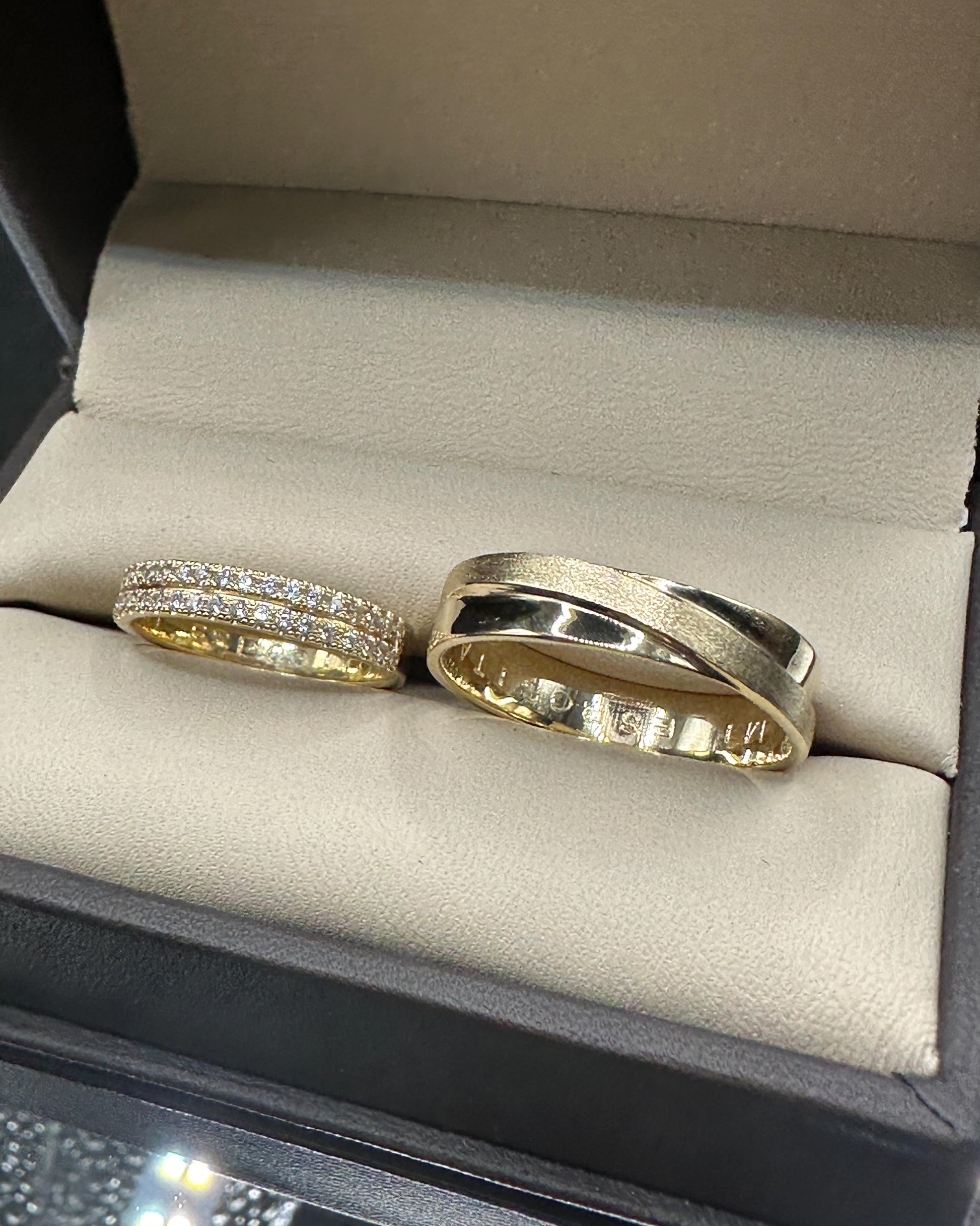 Un conjunto perfecto para parejas que buscan armonía entre brillo y sobriedad, con piezas que reflejan tanto la fuerza como la delicadeza del amor eterno.